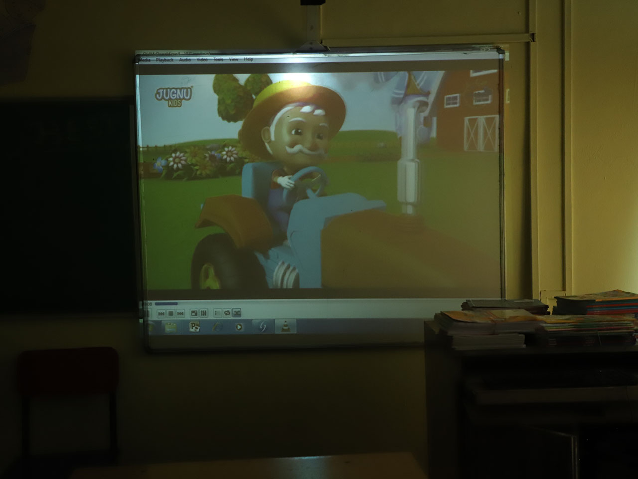 A classroom where the teacher uses Projector or using a model to explain concepts